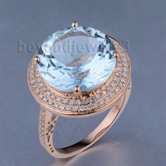 Genuine Stone Womens Rings Solid 14Kt Rose Gold Natural Blue Topaz Diamond Engagement Ring, Natural Gemstone Ring